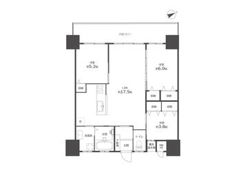 3LDK(洋6・5.2・3.8 LDK17.5)
