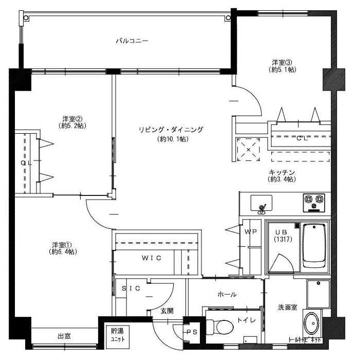 3LDK(洋6.4・5.2・5.1 LDK13.5)